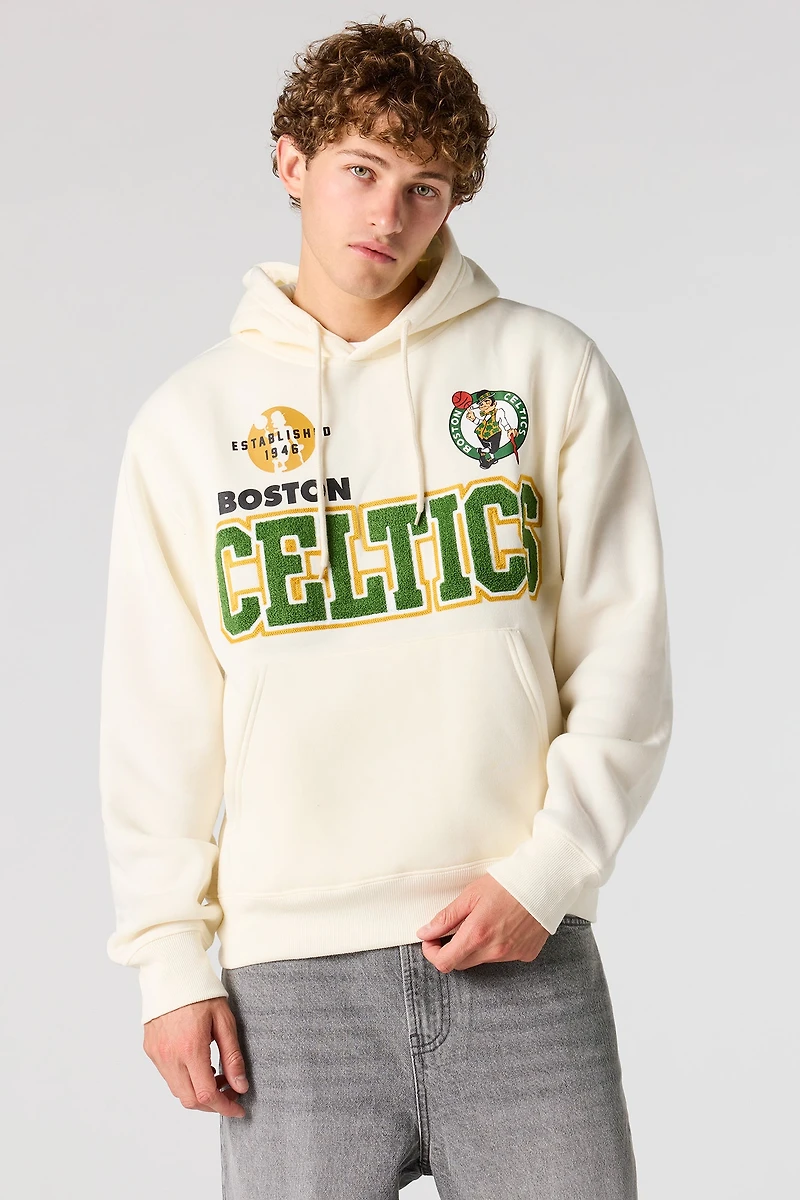 This hoodie features fleece material, chenille embroidered front, HD print front, drawstring hood, kangaroo pocket, long sleeves, and ribbed knit trim.