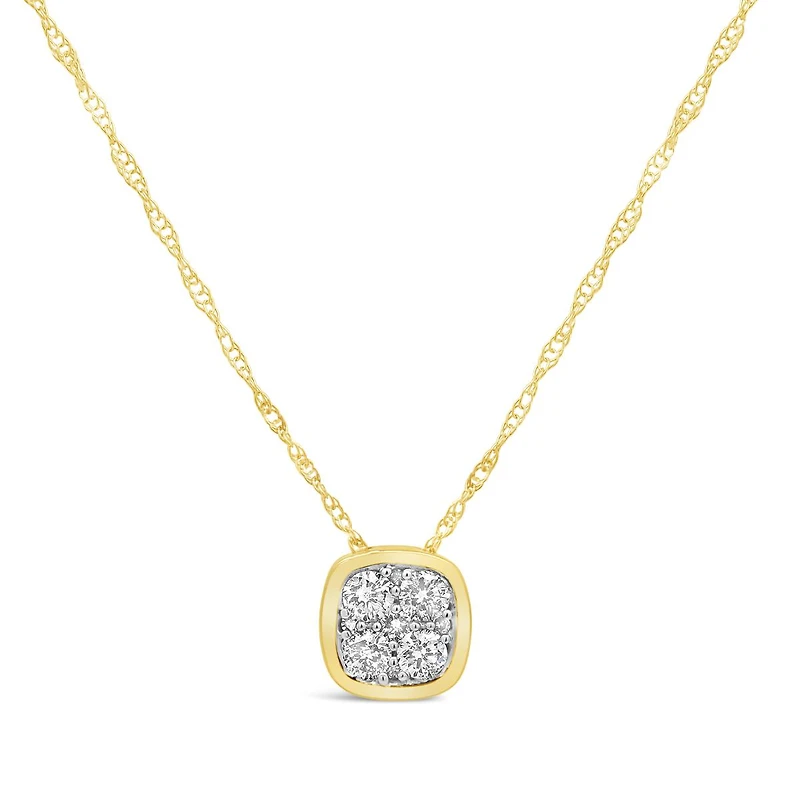 Bouquet 0.20CTW Diamond Cushion Shaped Pendant in 10K Yellow Gold