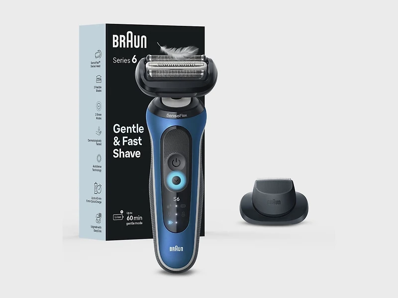 GENTLE SHAVE FASTER: Braun Series 6 Shaver: for a gentle shave, faster than ever before. Dermatologically tested, now with Sensitive SkinGuard (*vs previous Braun Series 6) MINIMIZE PRESSURE ON THE SKIN. The SensoFlex Shaving Head minimizes pressure on the skin for closeness even on sensitive skin 2 SHAVE MODES: now with Gentle mode and Turbo mode for an extra fast shave with up to 28.5% more