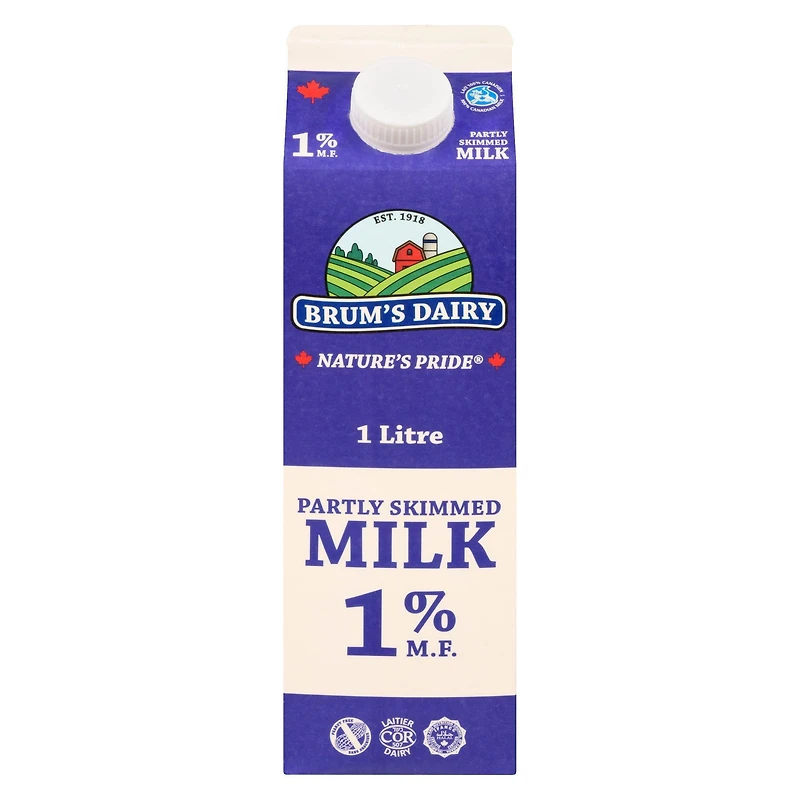Brum's Partly Skimmed 1% M.F. Milk is the great taste the Ottawa Valley grew up with. Pure and additive-free, Brum's Milk uses the best of nature to nourish, the same way Henry Brum did on his farm. From our family to yours, since 1918.