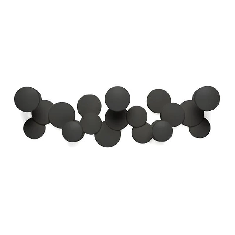Umbra Bubble Hook –Multi Hook Modern, Decorative, Space-Saving Coat Hanger 5 Hooks for Hanging Accessories, Clothes, Etc.Eye-Catching Shape and Finishes - this Playful Hook Looks Like a Cluster of Bubbles and Comes in your Choice of Satin Black or Satin White and has a Smooth Finish.Decorative Hook - a Spin on the Traditional Wall-Mounted Hook, Bubble Contains Five Hooks, But Doubles as Wall Art, as its Bubble-Shaped Hooks Merge with its Decorative and Playful Shape, Rather Than Clearly Protruding Like the Typical Hook.Designed by Nate Asis - Nate Wanted to Create a Hook that Looked Great When Not in Use. the Shape of Molecular Models and Bubble Clusters Inspired the Attractive Form of this Hook.Great for Small-Space Living - Bubble Packs Three Large Hooks and Two Small Hooks Into One Compact and Decorative Product that Makes Use of Wall Space, without Protruding Too Much Out of the Wall. it Measures 19 x 6 x 3 Inches.No Snag Hooks - the Large Surface of These Hooks Prevent Snagging and the Gentle Material is Also Easy on Garments Like Sweaters. Bubble Hook Holds up to 25 Lbs.Specifications. Color: Black. Weight: 0.98 lbs- SKU: MBRLL511