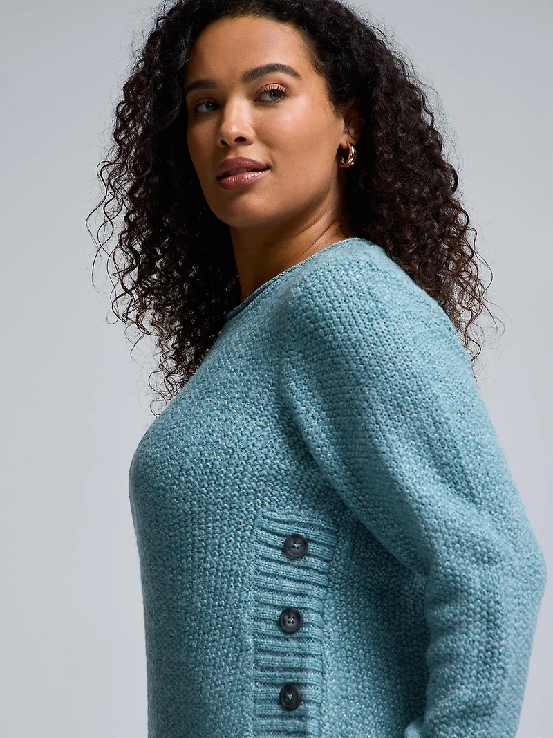 A modern take on a classic knit, this sweater features side button details and a rounded hem for the most flattering fit.