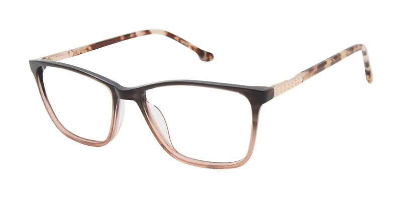 •Lightweight and uplifting square shape with natural brow line.•Multi-color floral acetate in a marbelized fade to blush glitter front. •Thin acetate temples with double metal studs’ accent on the endpiece.•Sleek acetate material is lightweight for all day comfort.•Spring hinges for comfort and flexibility.•Progressive-friendly