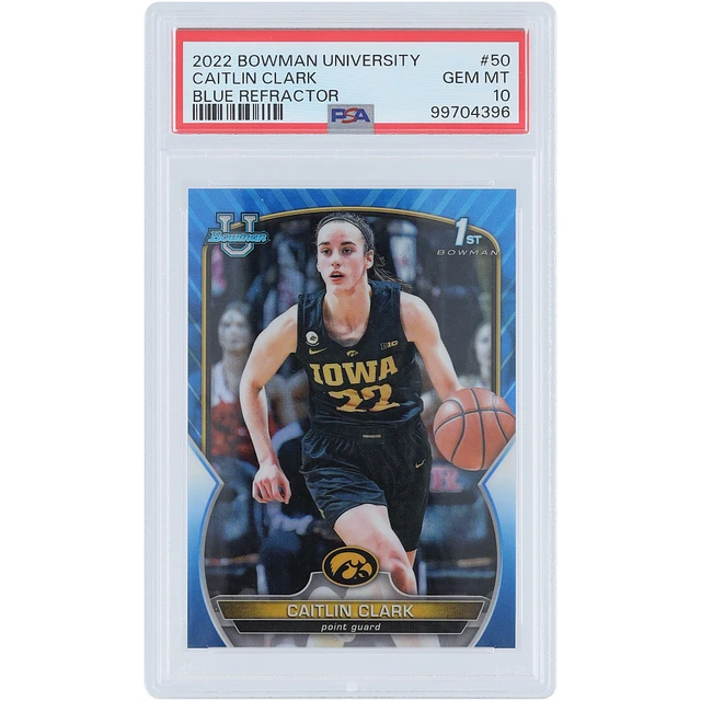 Caitlin Clark Iowa Hawkeyes 2022 Bowman Chrome U 1st Bowman Blue #50 #19/199 PSA Authenticated 10 Card