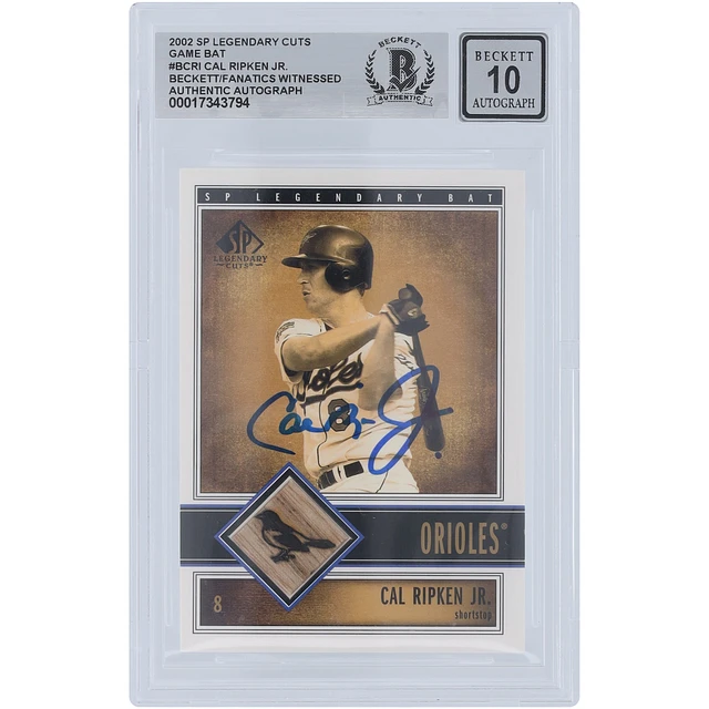 Cal Ripken Jr. Baltimore Orioles Autographed 2002 Upper Deck SP Legendary Cuts Game Bat Relic #B-CRI Beckett Fanatics Witnessed Authenticated 10 Card