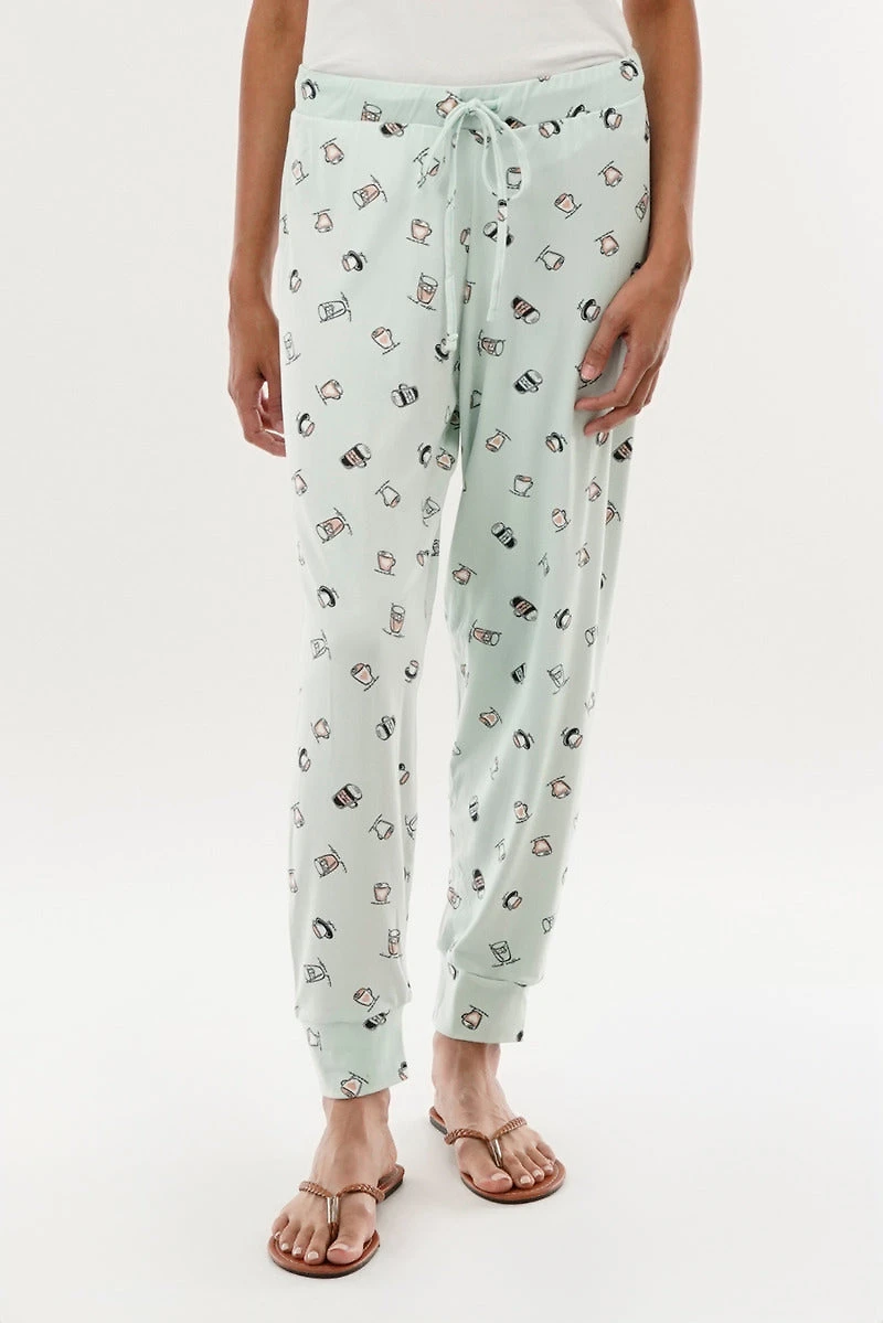 Canada Weather Gear Coffee Print Tie Waist Pajama Pants