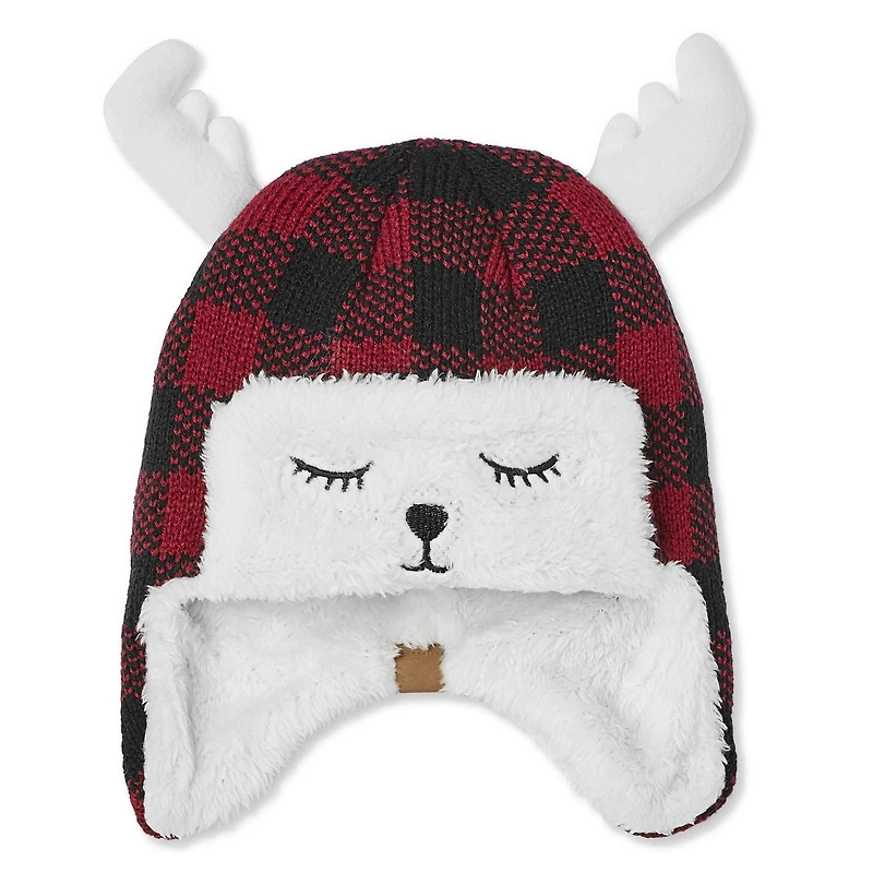 A cute way to keep warm as the year winds down, pull on Canadiana baby boys' Buffalo check trapper hat with antlers. Soft plush lines the ear flaps for extra warmth, while a jacquard-knit shell boasts classic outdoorsmen style. To (literally) top it off, applique critter ears and an embroidered critter face add a youthful charm to this winter essential.