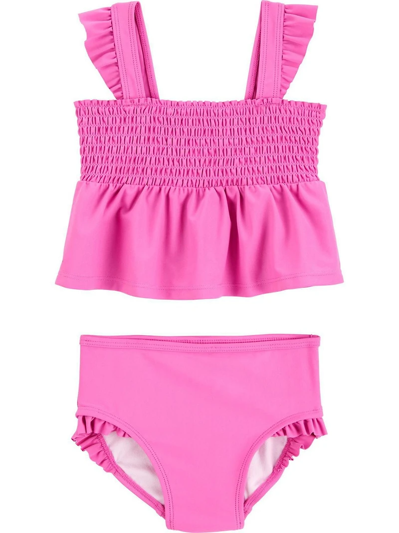"Her perfect pool day look is here! Capture the sweetest sunny weather moments when your little one wears this adorable 2-piece tankini swimsuit for little girls. This 2-piece swimsuit includes one pair of swim bottoms and a matching tankini swim top, so she’s ready to head out for an exciting water adventure no matter the place! Plus, with adorable ruffles on the sleeves and ruffles at the legs she has an unforgettable look that’s picture worthy! This 2-piece swimsuit is Standard 100 by OEKO-TEX so it's certified clean for your little one."