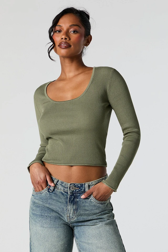 Haut en tricot côtelé à épaule dégagée et manche longue