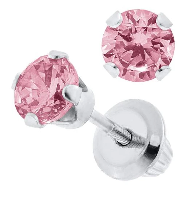 Children's Sterling Silver Pink Cubic Zirconia Safety Back Earrings