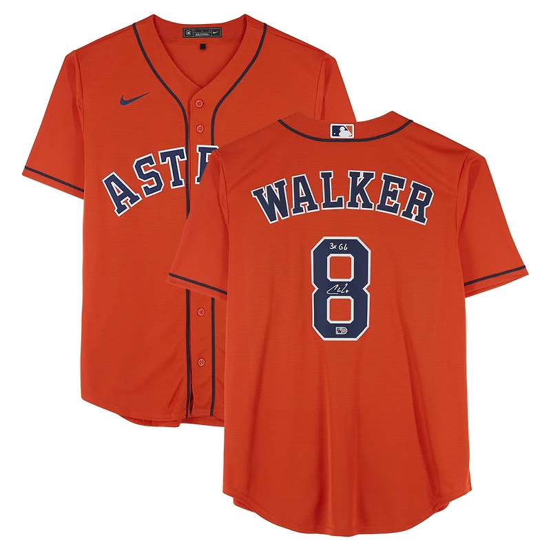 Elevate your collection of Houston Astros memorabilia with this Christian Walker autographed Orange Nike Replica Jersey. Featuring eye-catching team details with the star first baseman's signature and an inscription commemorating his three Gold Glove Awards, this is a must-have both for serious collectors and dedicated fans. Obtained under the auspices of Major League Baseball, it also includes an individually numbered, tamper-evident hologram that can be verified online to certify its authenticity.