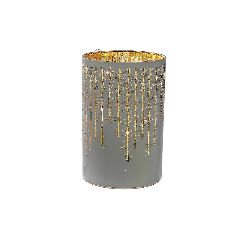 Featuring white color with an attractive dangling garland design, this 6” LED white cylinder glass stand lightens up your décor and creates the perfect ambiance. Made of glass, this lighted display stand is perfect for decorating your living room, guest room, and bedroom. You can pair it with the rest of your Christmas decorations to bring the festive vibe. This LED glass stand requires three AA batteries which are not included in the pack.Design: Dangling Garland LED White Cylinder Glass StandMaterial: GlassDimension: 4 L × 4 W × 8 H inchesUse: Ideal to be used as a home décorCare Tip: Spot clean