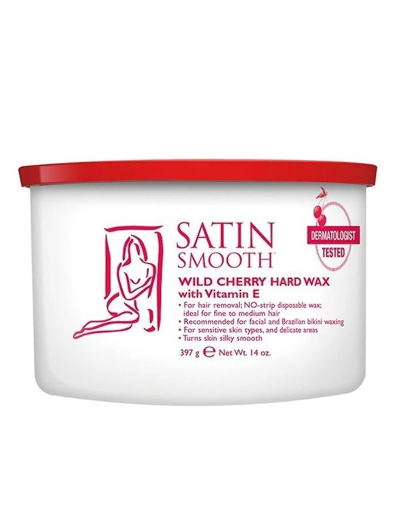 Cire dure satinée lisse au cerisier sauvage - 397 g Développées par des spécialistes renommés des soins de la peau, ces cires de qualité supérieure sont enrichies de formules individuelles. Les extraits naturels de cerise créent une cire polyvalente parfumée qui apaise la peau, tandis que la vitamine E agit comme tampon pour prévenir les irritations. Son point de fusion bas permet une application rapide et s'étale facilement sur de grandes surfaces. Recommandée pour l'épilation du maillot brésilien et les zones sensibles, elle est formulée pour les poils fins à moyens et tous les types de peau. Elle contient du dioxyde de titane, un tampon naturel, pour éliminer le talc, et de la propolis, une substance végétale naturelle. Elle contient de la vitamine E et des extraits naturels de cerise sauvage, dont les enzymes puissantes pénètrent et adoucissent la tige du poil.