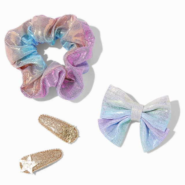 Claire's Club Iridescent Mixed Scrunchie & Hair Clips Set - 4 Pack