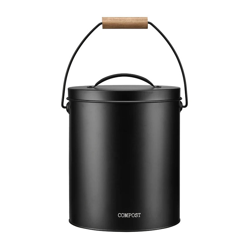 Compost Bin Black with Wooden Handle