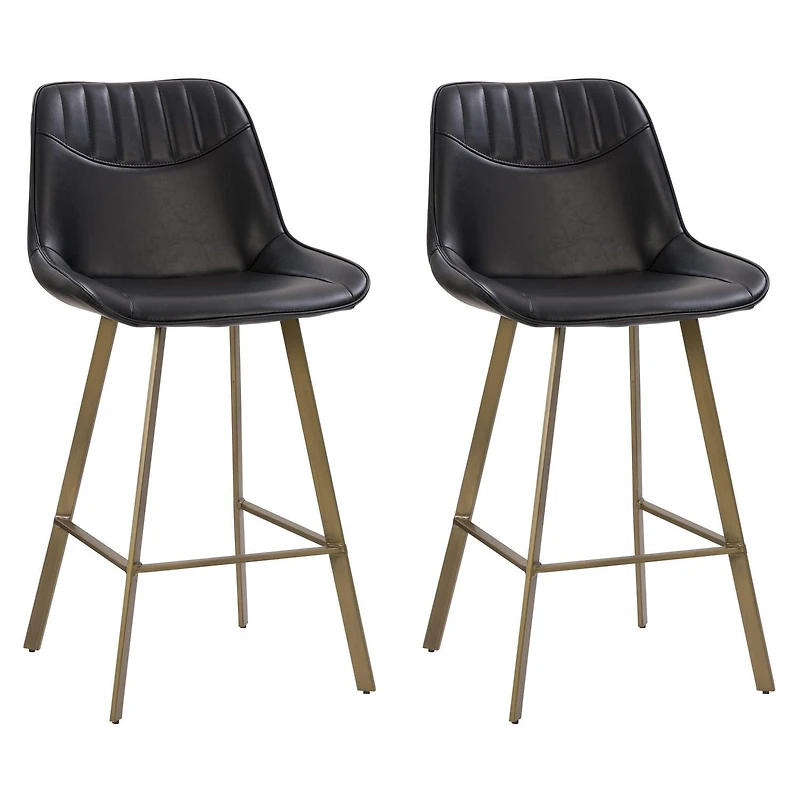 Refresh your kitchen with our Modern Christoff Barstools. This set of two barstools features seats covered in strong and easy-to-clean polyurethane vegan leather. The sturdy powder-coated steel legs have an antique finish, giving these barstools a solid build you can count on. Whether you're enjoying a snack at the counter or helping with homework, these barstools are a great fit for your space. The mix of materials combines modern farmhouse charm with an industrial look, adding a stylish edge to any kitchen. Simple, strong, and stylish, the Christoff barstools are the perfect way to give your kitchen a fresh, updated feel.