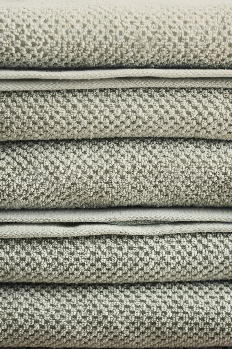 Fast-drying, classic bath towel in soft, highly absorbent cotton terry. Hanger loop on one long side. Series includes towels in several different sizes. Fabric weight 550 GSM.