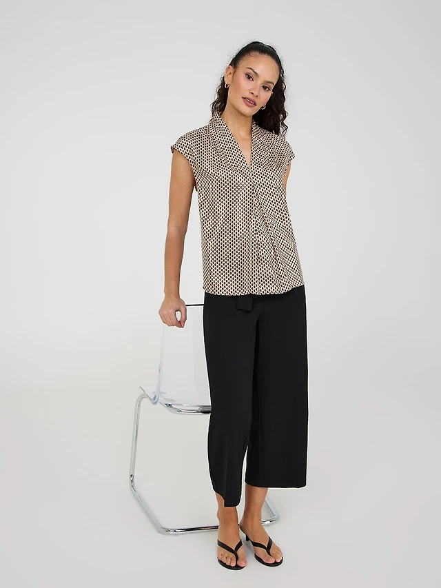 Tie Detail Blouse & Crepe Pull-On Pants