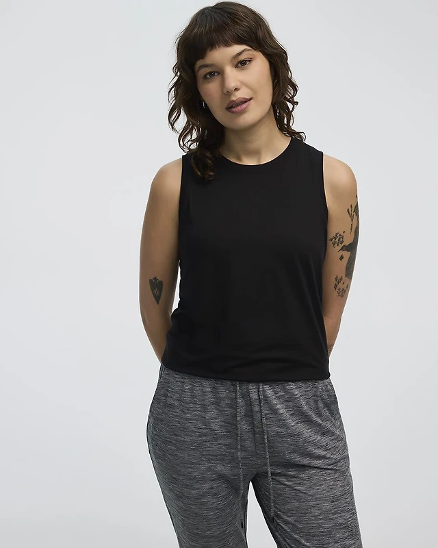 Seamless Ribbed Crew Neck Tank with Built-In Cups