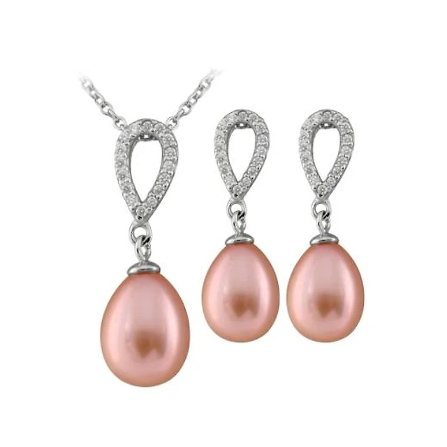 Cubic Zirconia & Pearl 2 Piece Silver Set