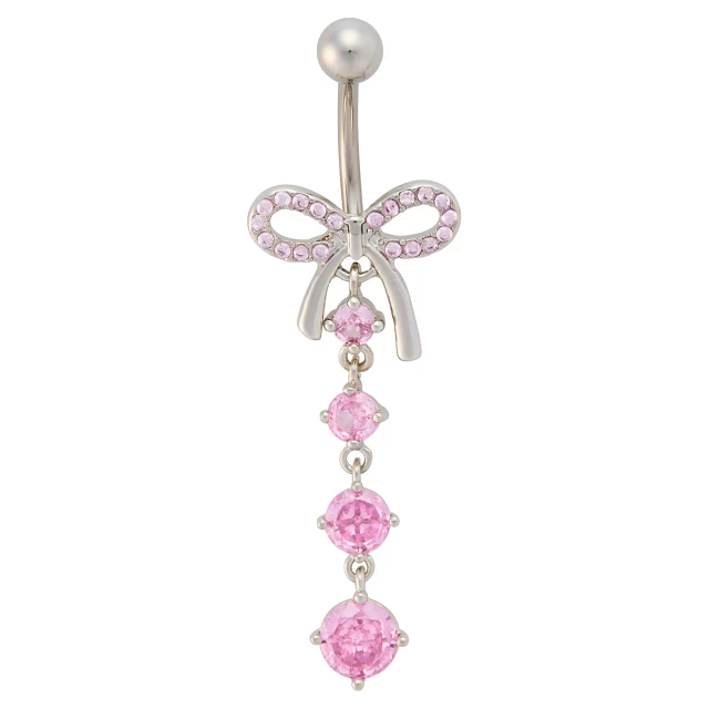 Triple Pink CZ Heart Slices Dangle Belly Ring - 14 Gauge