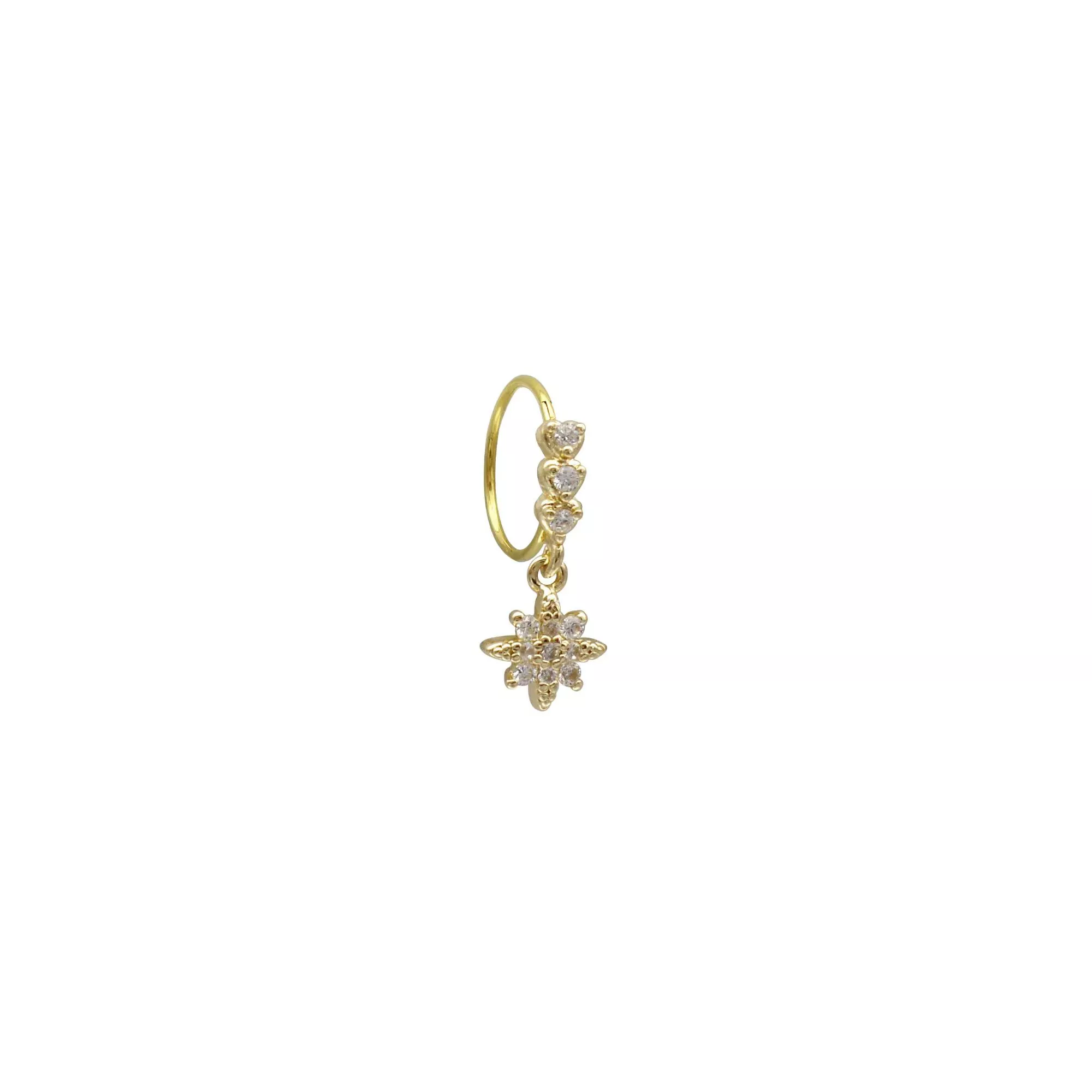 CZ Goldtone Dangle Star Hoop Nose Ring - 20 Gauge