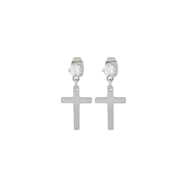 CZ Cross Dangle Stud Earrings - 20 Gauge