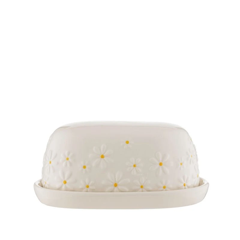 Butter Dish, with cover, 17 x 10.5 x 8cm H, daisy motif, stoneware.