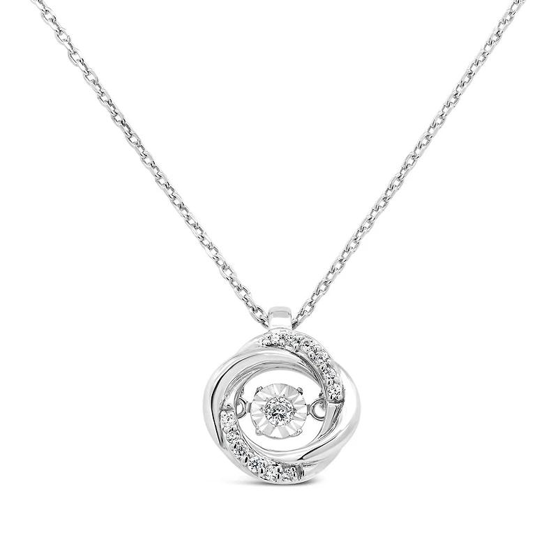 Elevate your style with our Dancing Diamonds Sterling Silver Diamond Pendant, a mesmerizing piece featuring a captivating display of shimmering diamonds. The unique design allows the diamonds to dance with every movement, creating an enchanting and dynamic effect. Crafted in sterling silver, this pendant adds a touch of glamour and sophistication to any outfit, making it a versatile and eye-catching accessory for various occasions.