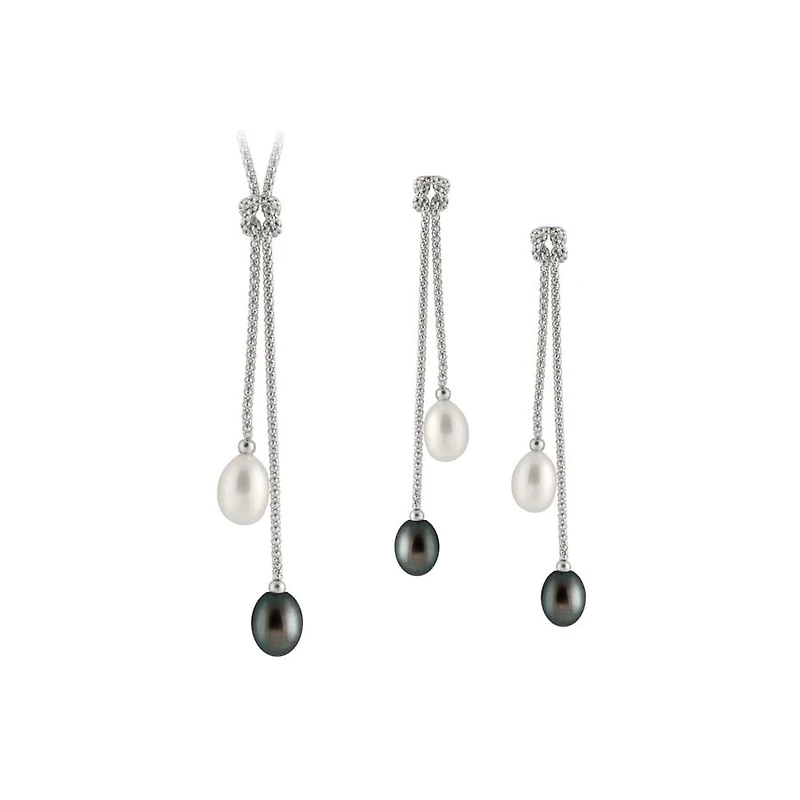 Dangling Pearl Silver Set