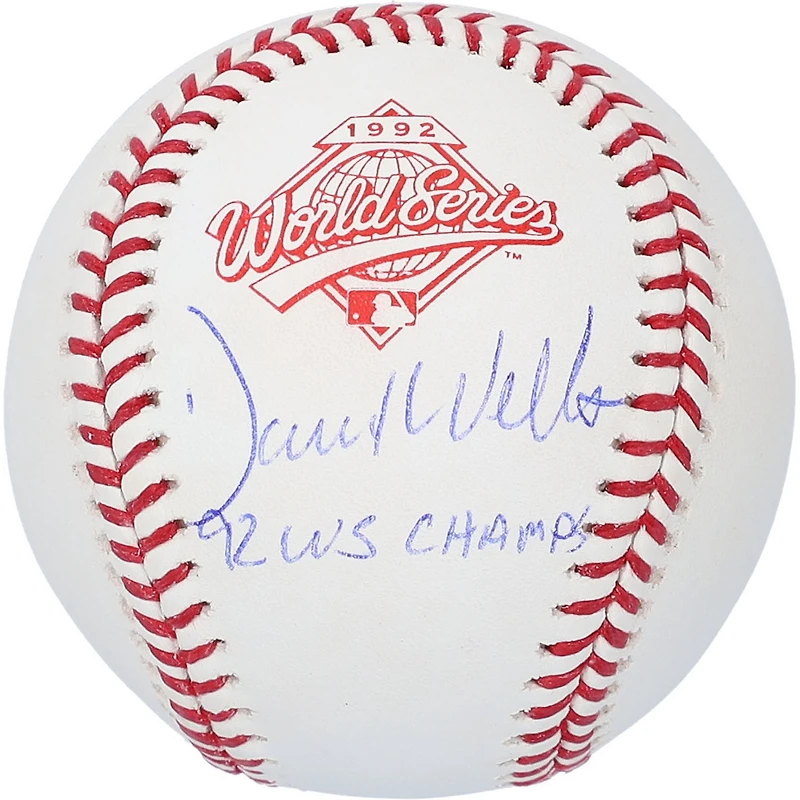 This baseball has been personally hand-signed by David Wells with the inscription "1992 WS CHAMPS." It has been obtained under the auspices of the Major League Baseball Authentication Program and can be verified by its numbered hologram at MLB.com. It also comes with an individually numbered, tamper-evident hologram from Fanatics Authentic. This process helps to ensure that the product purchased is authentic and eliminates any possibility of duplication or fraud.