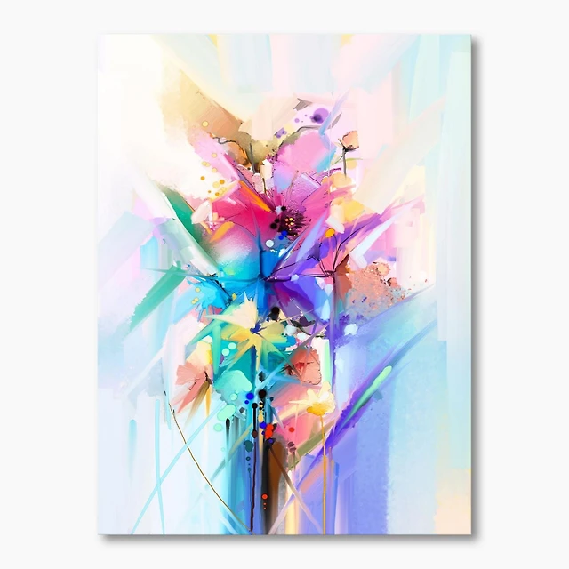 Designart Abstract Colorful Spring Flowers Canvas Wall Art