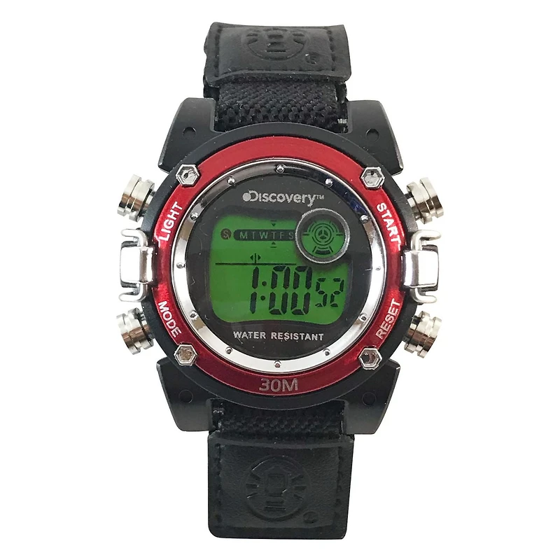 Discovery Black Nylon Fastwrap Digital Watch with Red Accent