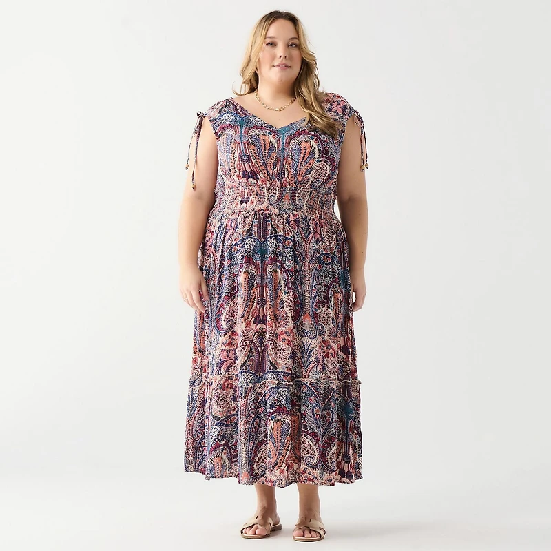 Your fit and flare maxi dress. Smocked waist and V-neckline to show off your shape and loose fitting tiered ruffled skirt. Can be worn at your next event with a statement heel and clutch or for your day job for a comfortable feminine feel. Comes in a fabulous Green/White Floral and Crown Flower.