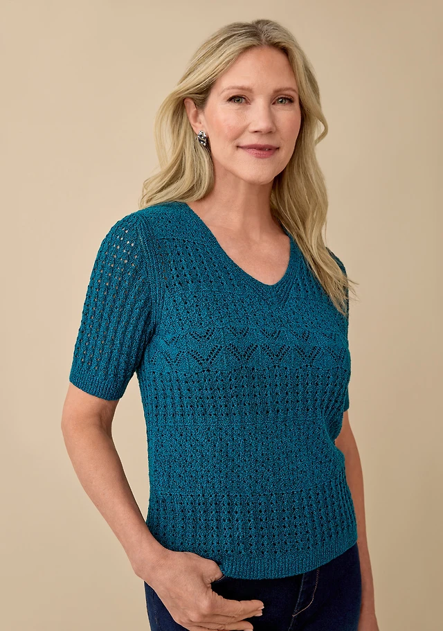 Short-Sleeve Pointelle-Knit Top for Toddler Girls