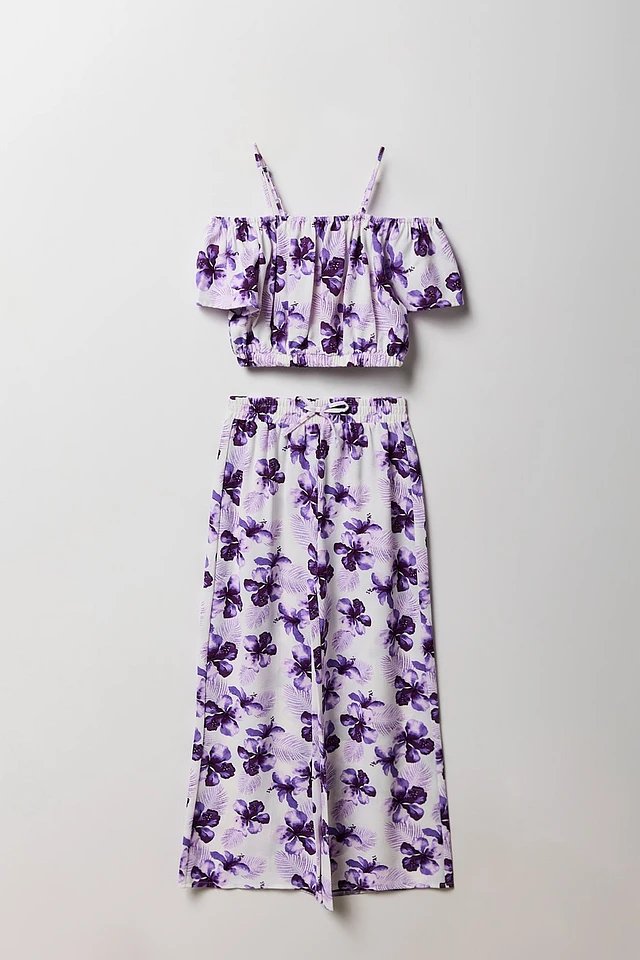 Ensemble avec haut à épaules dénudées et pantalon jambe large pour fille