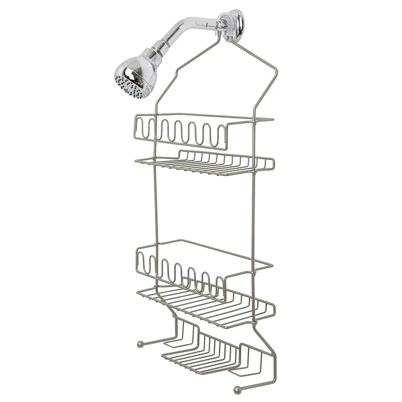 Maximize your bathtub's storage space effortlessly with the era Transition Shower Caddy. Its two-tier storage baskets and soap dish keep all your bath essentials organized and easily accessible while you shower. Crafted in a warm silver finish, it adds a touch of style to your bathroom. The caddy fits securely over most standard showerheads and includes suction cups to hold it against the wall, ensuring stability and security. Measuring approximately 11.81 x 24 inches, it provides ample storage space without taking up too much room. Say goodbye to cluttered showers and streamline your routine today. Upgrade your bathroom experience and order the Transition Shower Caddy now!