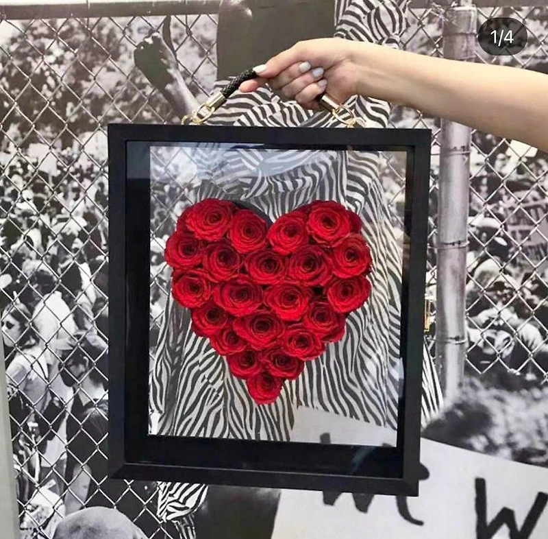 Preserved Roses in a large Heart Box with handle.