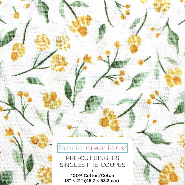 Fabric Creations White with Yellow Stemmed Flowers Fat Quarter Pre-Cut Fabric - 18" x 21" / 45cm x 53cm, 18" x 21" / 45cm x 53cm