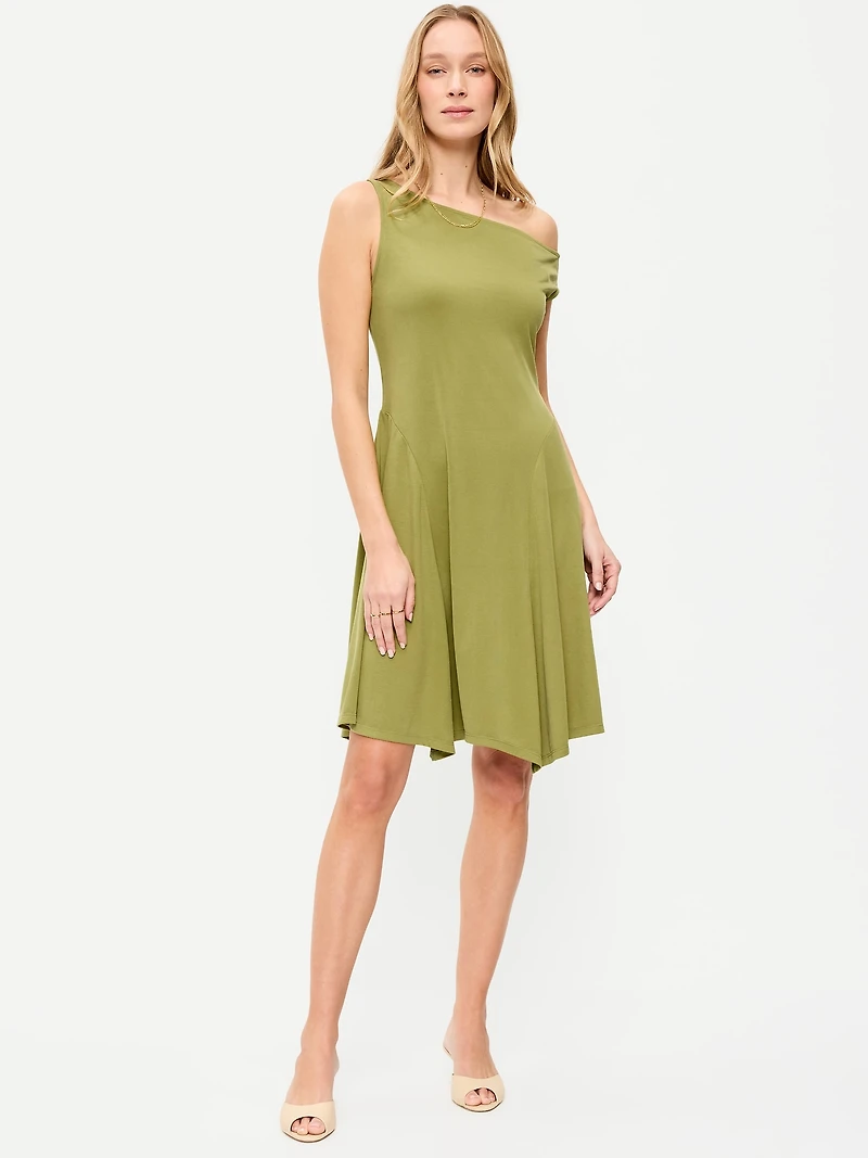 Fit & Flare Asymmetrical Shoulder Mini Dress