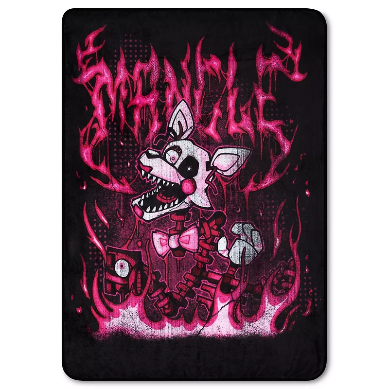 Mangle isn't just her name -- it's a threat. Cozy up with your favorite Five Nights at Freddy's character when you take home this officially licensed Five Nights at Freddy's Mangle Fleece Blanket! Designed with striking pink flames and death metal font, this iconic fleece is perfect for keeping you warm while sending chills down your spine.