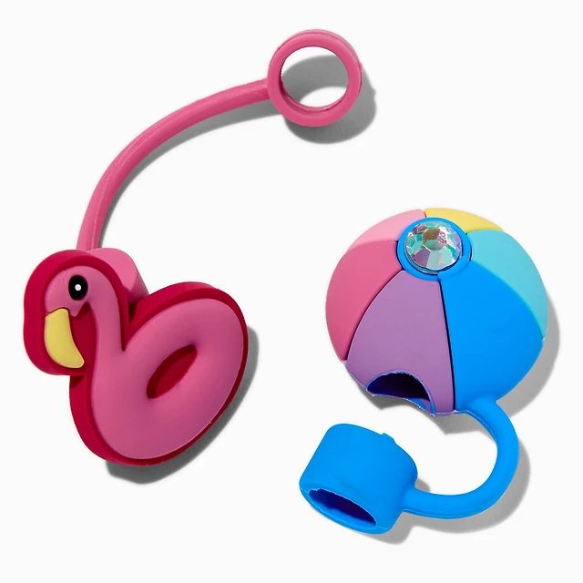Flamingo & Beach Ball Straw Covers - 2 Pack