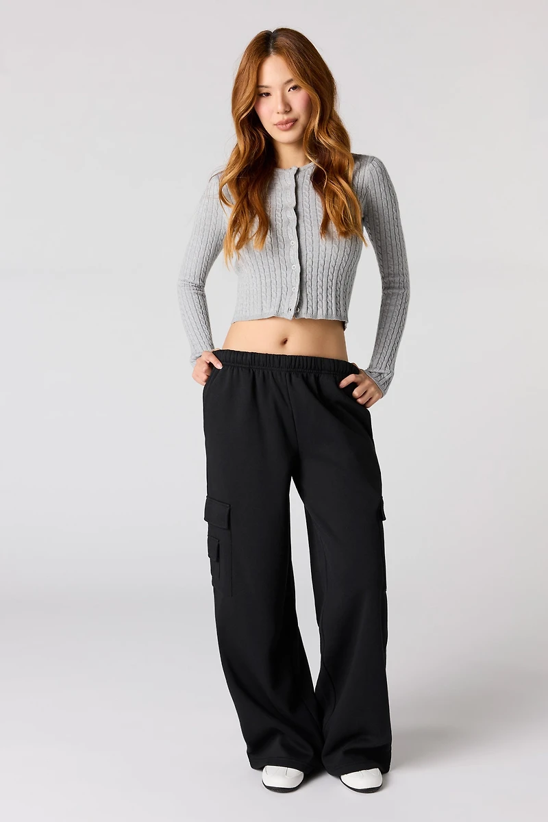 Fleece Ultra Wide Leg Cargo Sweatpant