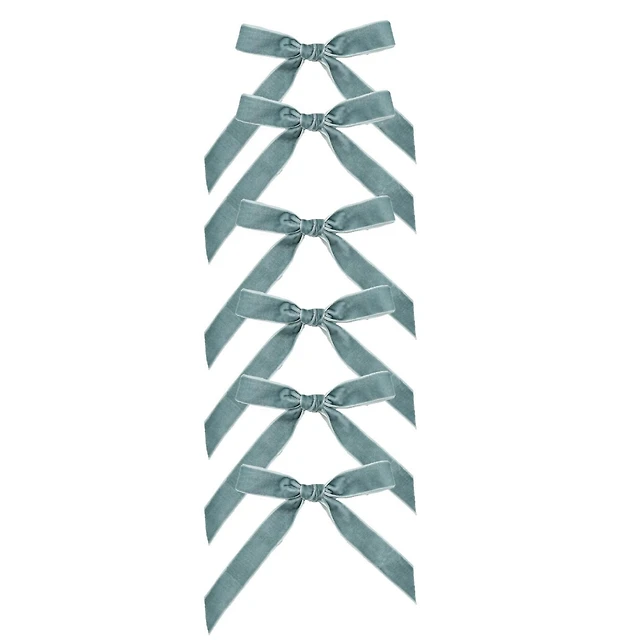 FRAÎCHE Holiday Light Blue Velvet Bow Clips Ornament Set, 6 Pack