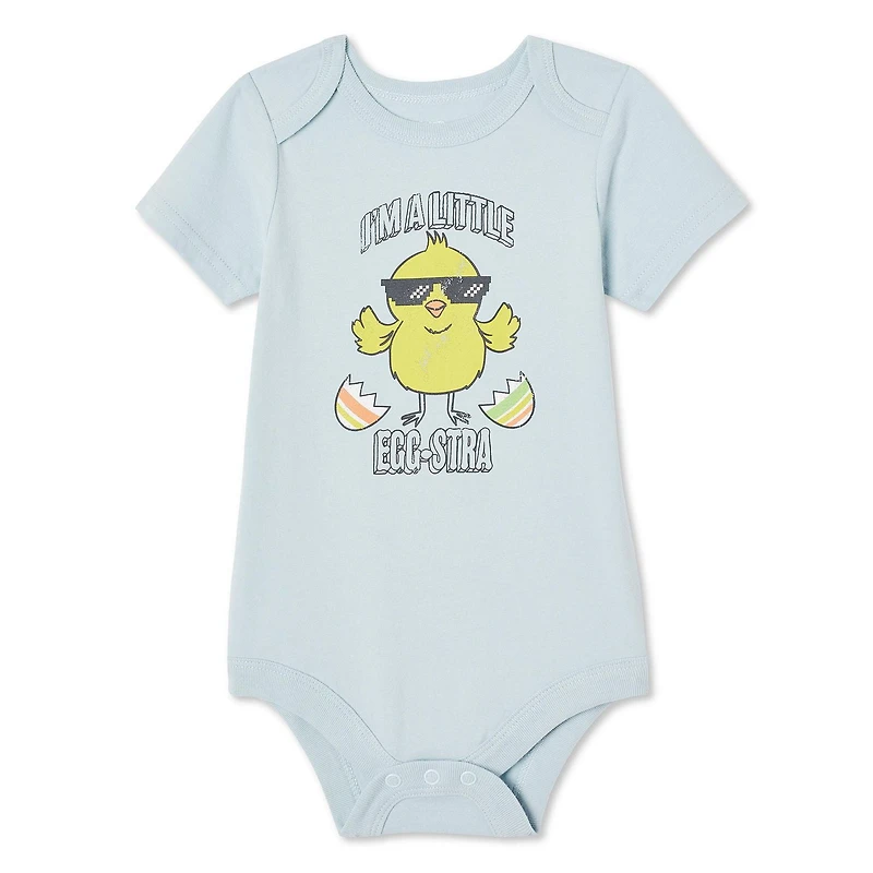 Dress your little one in the cutest Easter outfit with George baby boys' Easter bodysuit. Made of soft jersey knit in 100% cotton, it's gentle on your baby's delicate skin. The bodysuit features an envelope neckline, short sleeves, a front graphic print, and a snap-button inseam for easy diaper changes. Pair it with jeans or joggers for a complete look that's perfect for family gatherings and photo ops.