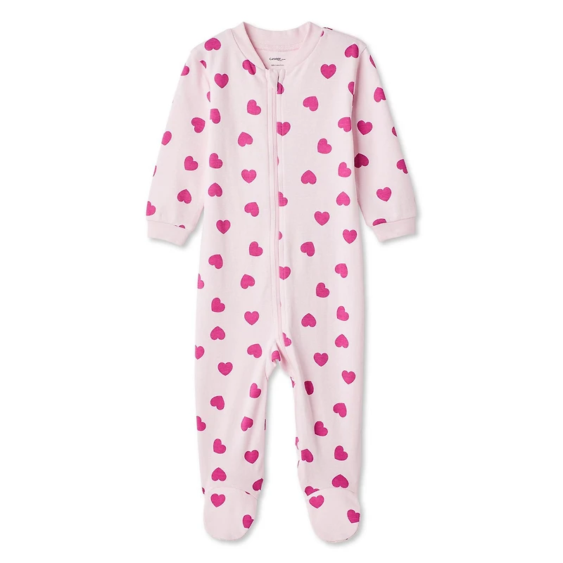 Add sweet style to bedtime and nap time with the adorable George baby girls’ printed sleeper. Made of 100% cotton, the soft fabric feels gentle for a good night’s sleep. It’s designed with a crew neck, long sleeves, a full-zip closure for easy changes, and attached footlets with grippers to help keep little feet warm and steady. The all-over print adds a playful touch to this essential sleepwear staple.