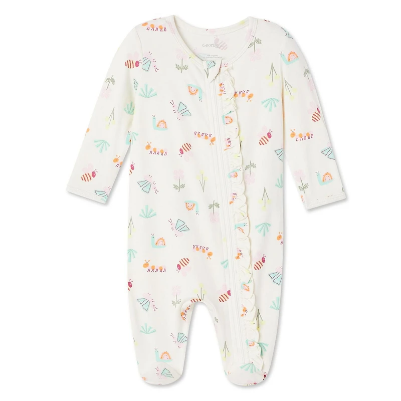 Add George baby girls' sleeper to her wardrobe for a comfy option for bedtime. Made from yummy knit fabric, it provides a soft and snuggly feel against his delicate skin. The sleeper features a crew neckline, long sleeves, a convenient full-zip closure, an adorable all-over print, a ruffled trim, and attached footlets to keep his tiny toes warm. Perfect for days spent lounging and naptime, this sleeper will ensure your little one stays comfortable all day long.