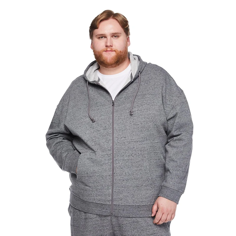 From days spent lounging around to busy on-the-go moments, George big men's full-zip hoodie has you prepared for unexpected windy days. Made of brushed back fleece, it's designed to keep you covered. It features a hood with drawstring, long sleeves with dropped shoulders, a full-zip closure, kangaroo pockets for convenience, a rib trim at the cuffs and bottom band for a snug fit, and a straight hem. Quick to throw on, it layers well over any tee or tank.