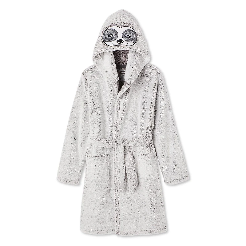 Make bedtime even more fun with George boys' hooded robe. Crafted from satin plush knit, this robe is soft and cozy for ultimate comfort. It features a hood with an embroidered patch, long sleeves, a waist tie, and 2 patch pockets for added convenience. Perfect for lounging around the house or snuggling up before bed, this robe will keep him warm and stylish. Layer it over his pajama sets and complete the look with his go-to slippers.