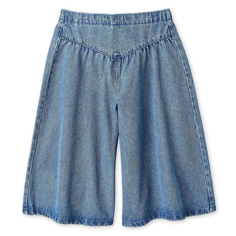 George girls’ denim gaucho pant brings a relaxed, trend-right silhouette to her everyday wardrobe. The denim is finished with an enzyme bleach wash for a soft feel and a worn-in look that’s easy to wear. Designed with a flat front, a back elasticized waistband, a front V-seam, wide legs, a relaxed fit, and a cropped length, they balance comfort with standout style. Pair them with fitted tees, tanks, or lightweight sweaters and sneakers for an effortless outfit.
